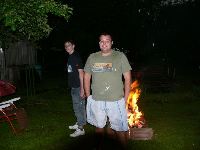 2007-06-01 Weisseln in Alzgern -- Max und Hans wärmen sich das Hinterteil am Lagerfeuer