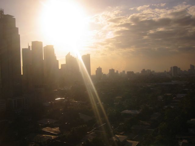 2003-02_Manila_Bangkok -- Makati Skyline bei Sonnenuntergang