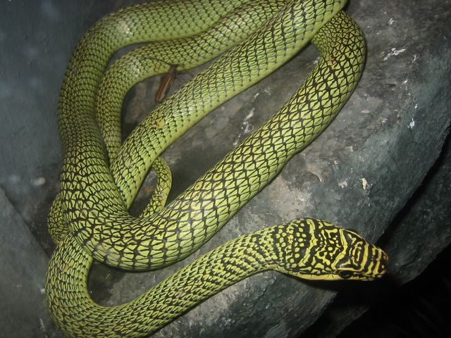 2003-02_Manila_Bangkok -- Bangkok Dusit Zoo - Hübsche Schlange mit Käfer