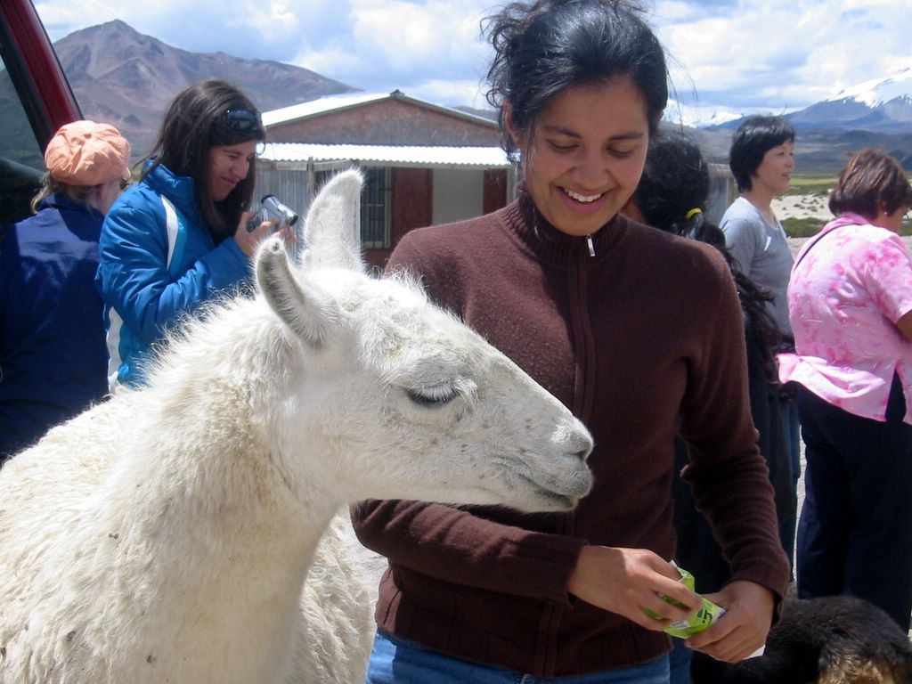 2006-03-14 Chile - Arica und Altiplano -- Ein Alpaka am Eingang des Parque Lauca