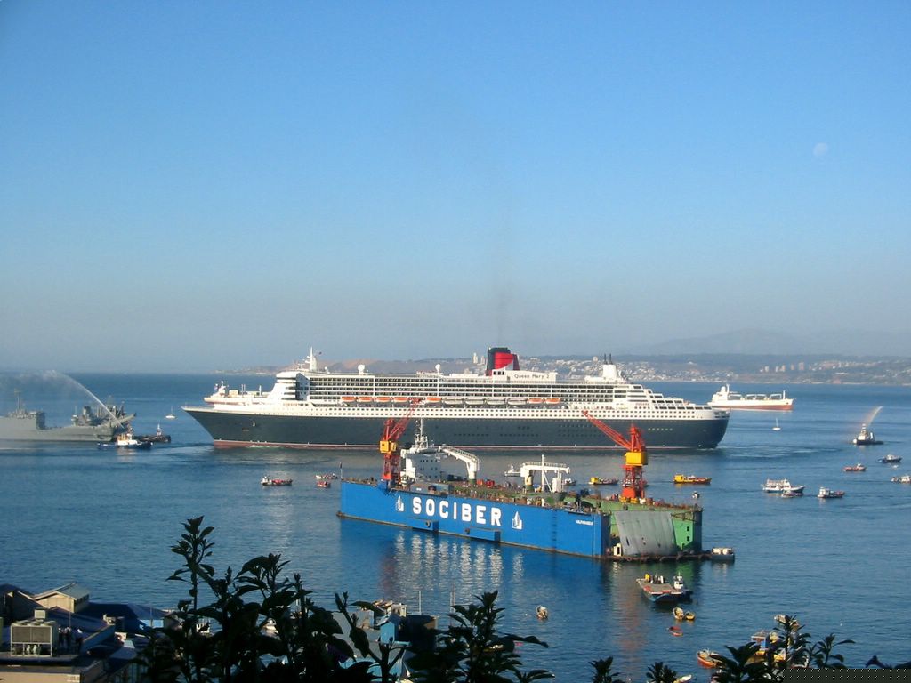 2006-02 Chile - Best Of -- Queen Mary 2 vom Cerro Conception aus beim Auslaufen erwischt