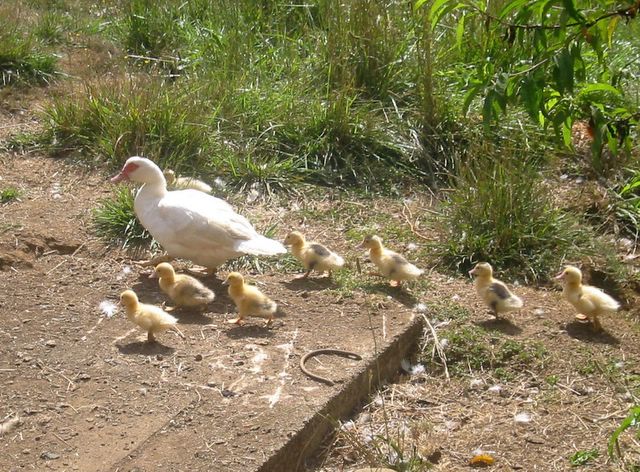 2006-02 Chile - Best Of -- Entlein vor dem Backpacker-Fenster