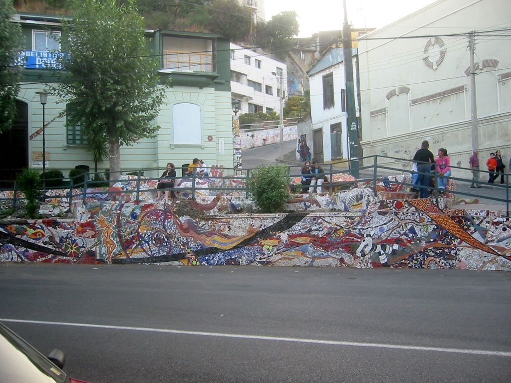 2006-02 Chile - Graffiti in Valparaiso -- Buntes Mosaik am Fuß vom Cerro Mariposa