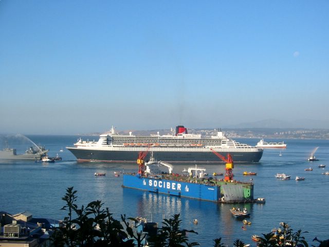 2006-02 Chile -- Queen Mary 2 vom Cerro Conception aus beim Auslaufen erwischt