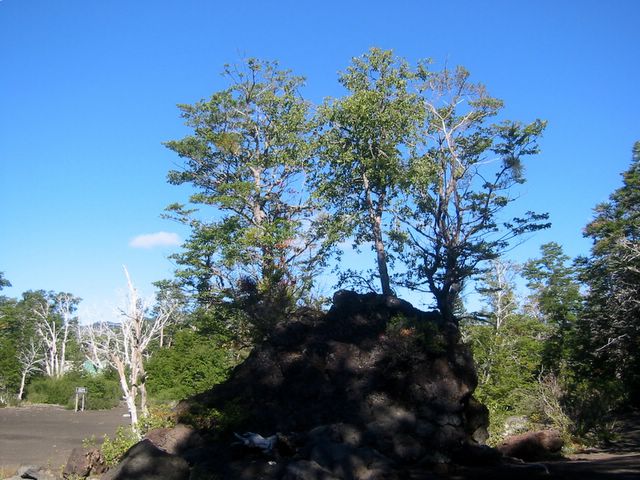 2006-02 Chile -- Baumgruppe auf Felsblock an der Laguna Captren