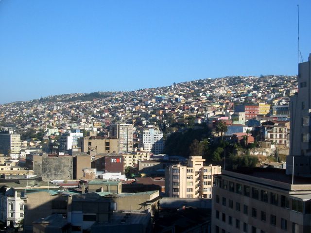 2006-02 Chile -- Der Cerro Mariposa, wo Marisols Haus ist, vom Cerro Conception aus gesehen