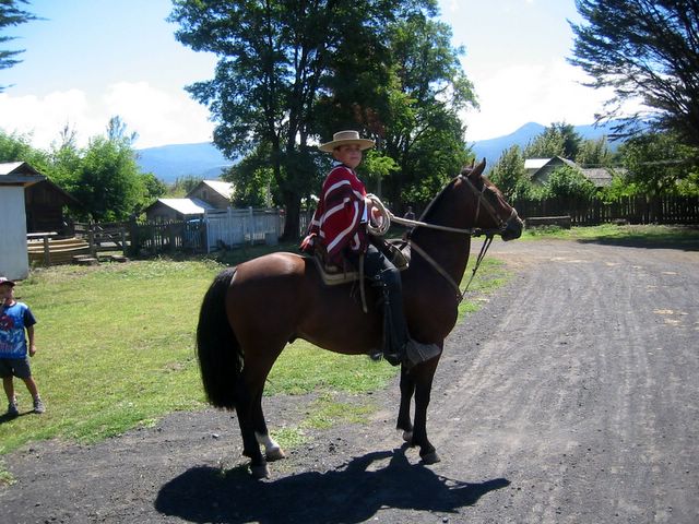 2006-02 Chile -- Gaucho-Junge, der uns im Casino bediente, auf seinem Rodeo-Pferd