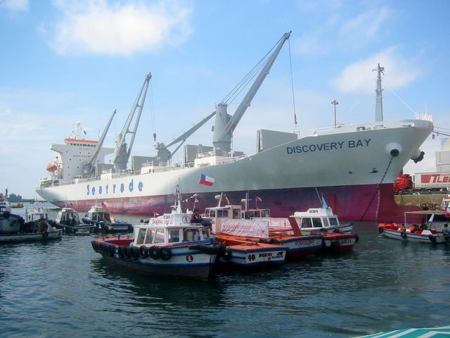 2006-02 Chile -- Frachtschiff im Hafen von Valparaiso