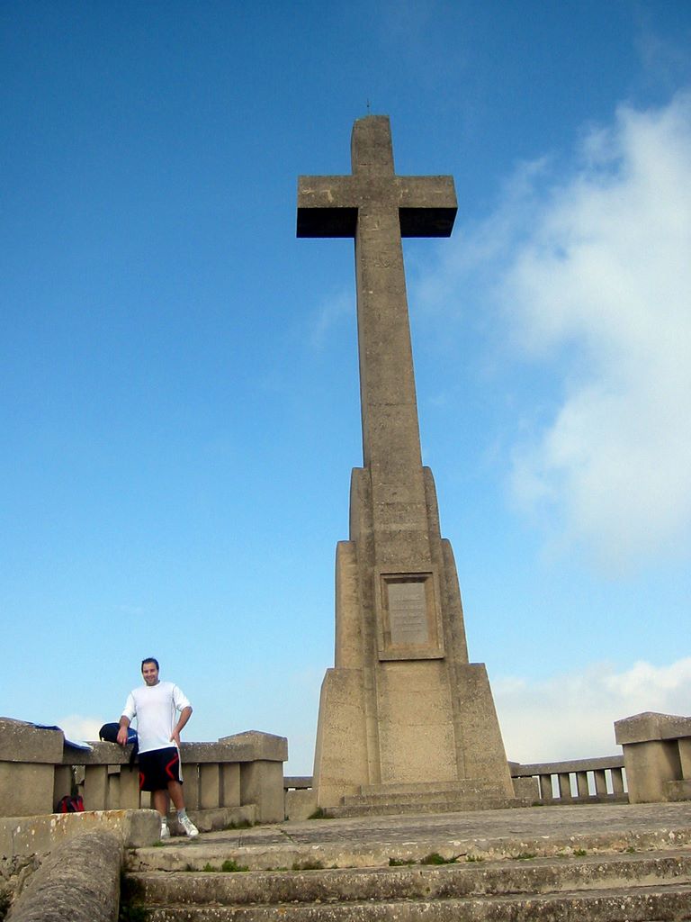 2009-03-08 Urlaub Mallorca -- Hans auf dem Kreuz am Puig Sant Salvador