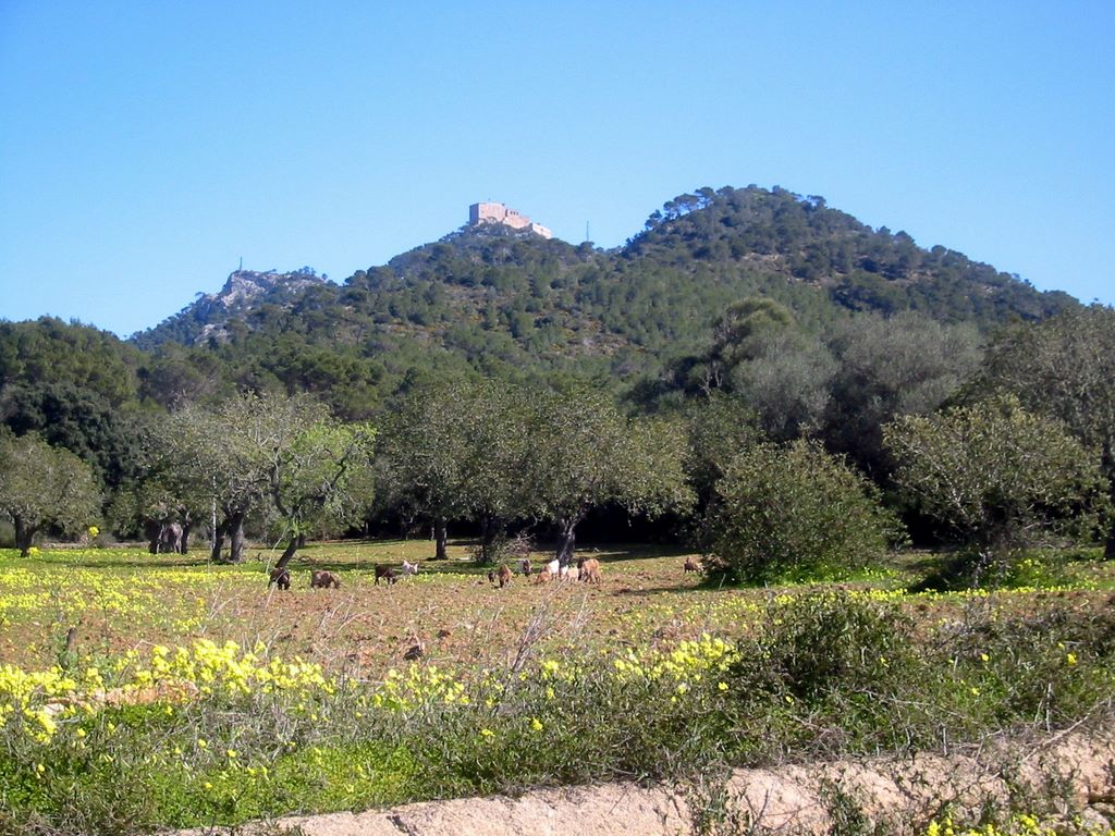 2009-03-08 Urlaub Mallorca -- Ziegen grasen unter dem Santuari de Sant Salvador